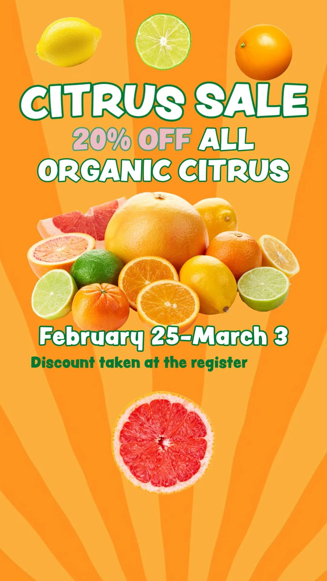 From sweet mandarins to vibrant oranges and grapefruit, citrus season is here. Save 20% February 25โMarch 3 and stop by our Citrus Tasting on Saturday, February 28 from 1โ4pm to sample the seasonโs best.