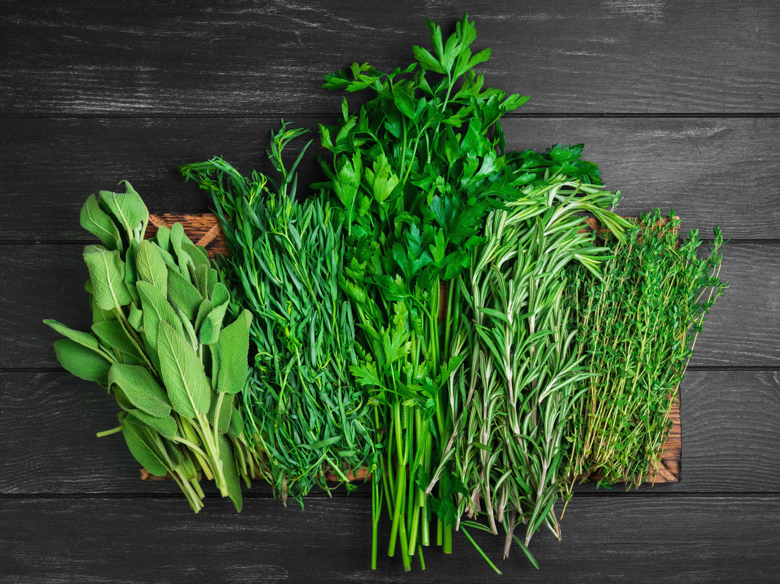 Herbs: sage, thyme, rosemary, parsley